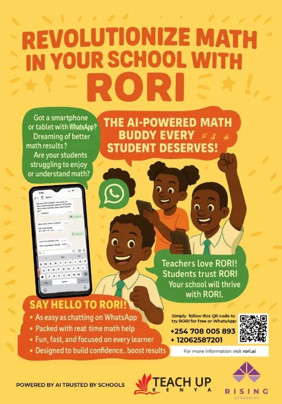 Rori—our award-winning AI-powered maths tutor—is now reaching affordable private schools in Nairobi through a locally-led implementation model designed to put communities at the center. In partnership with TeachUp Kenya, we’ve already onboarded more than 20 schools, with 10 more set to join by the end of August.