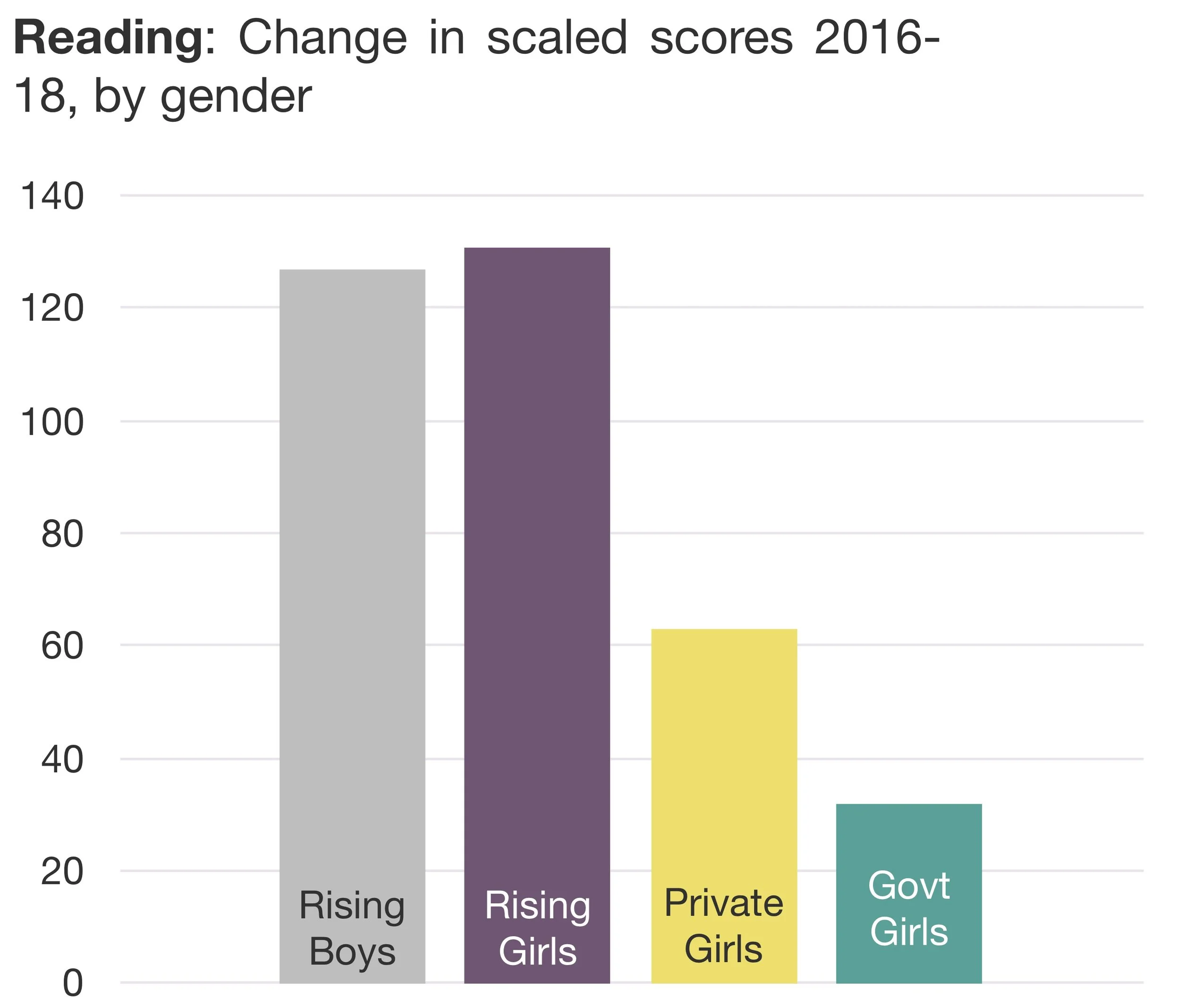 Indeed, a lot of the difference in overall learning gains between Rising and non-Rising schools seems to be driven by the differential performance of girls.